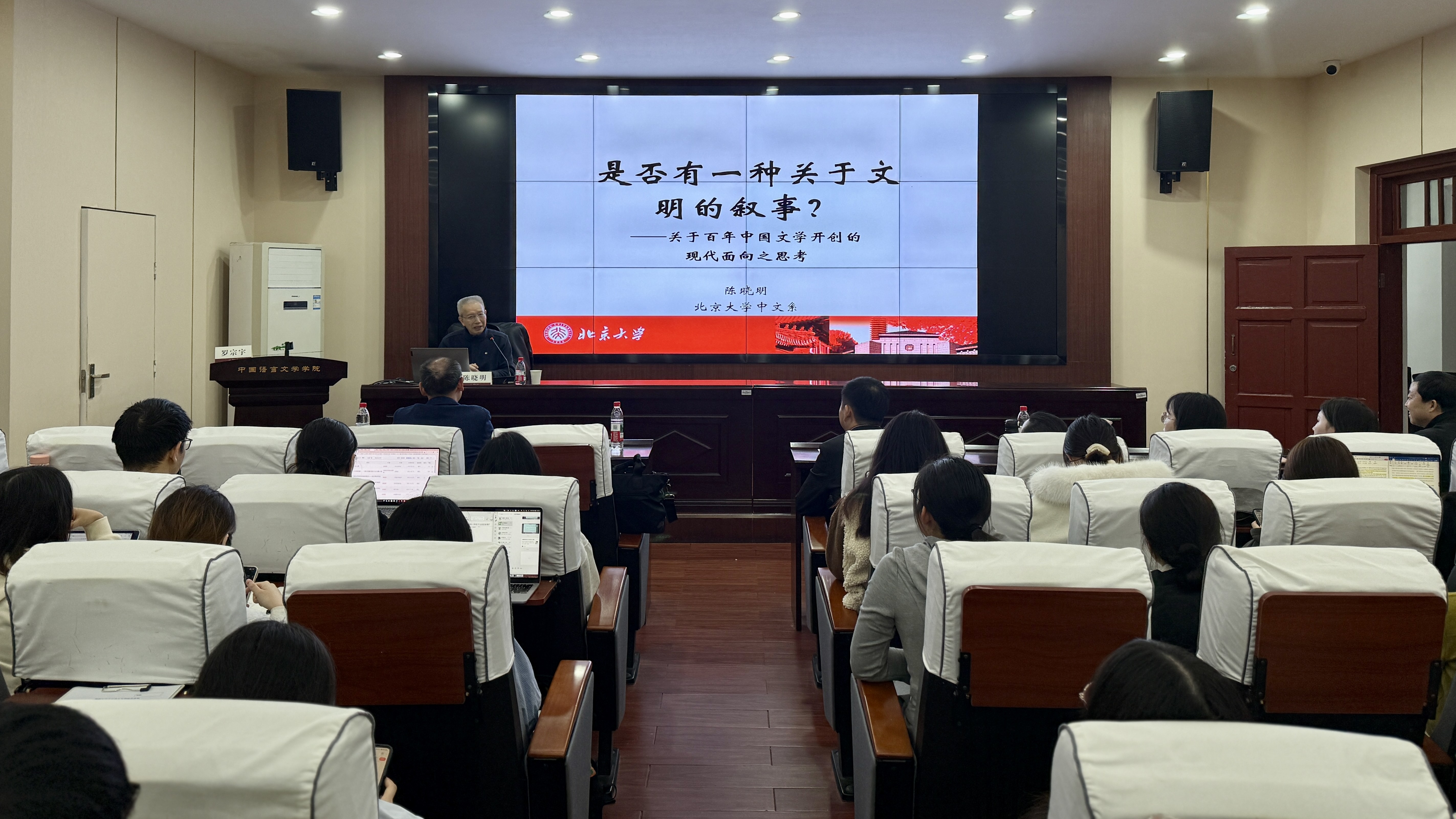 2025年10月19日晚,应湖南大学中国语言文学学院邀请,北京大学中文系教授、博士生导师陈晓明在文学院207学术报告厅开展了题为“是否有一种关于文明的叙事”的学术讲座,讲座由罗宗宇教授主持。
