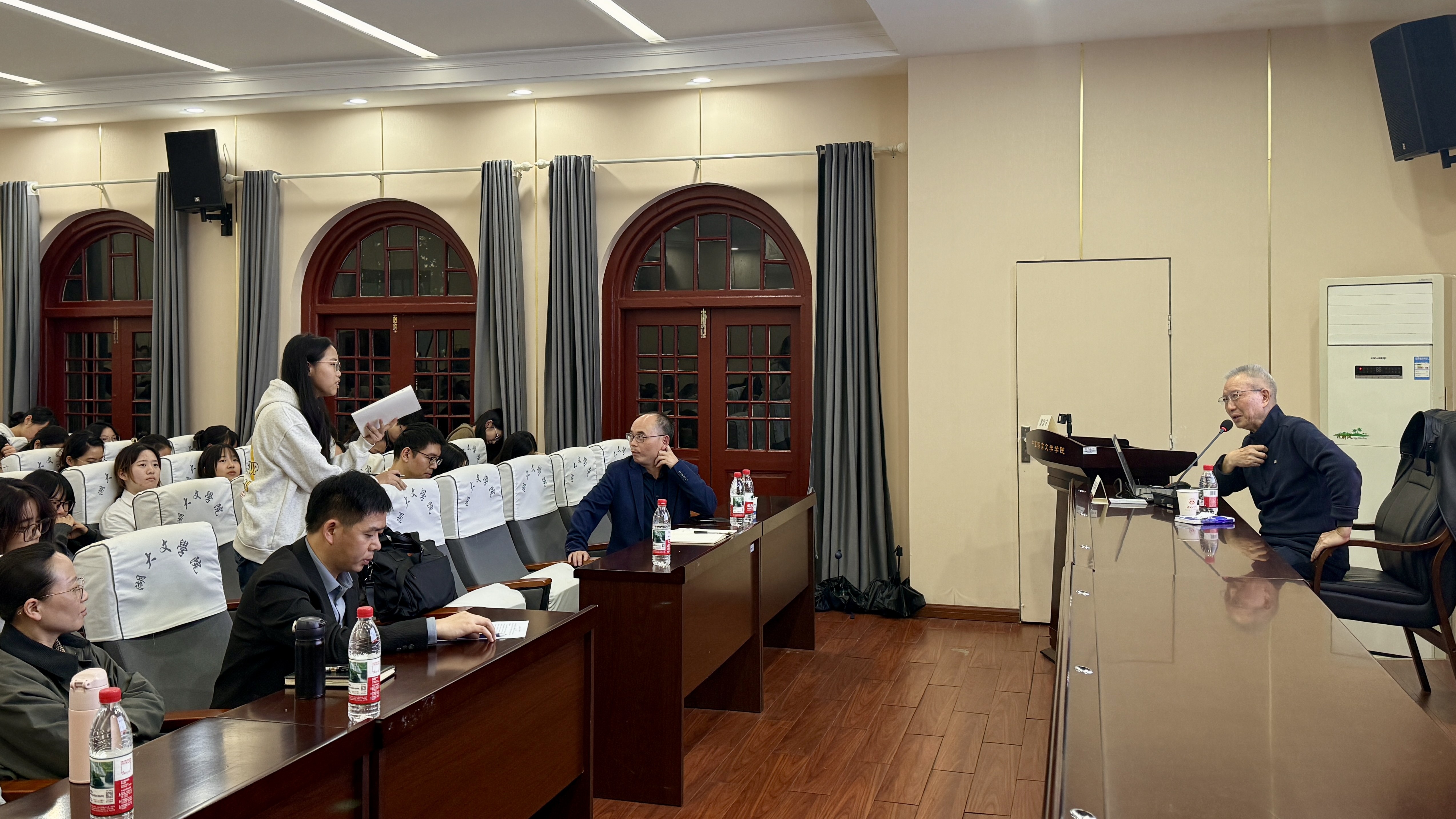 互动环节,现场气氛热烈,同学们围绕中西方对于国家与文明边界一致性的不同态度、文明叙事在未来是否变化等问题与陈晓明教授进行了深入交流,陈教授结合专著与学术前沿,耐心细致地逐一回应,让在场师生深受启发。