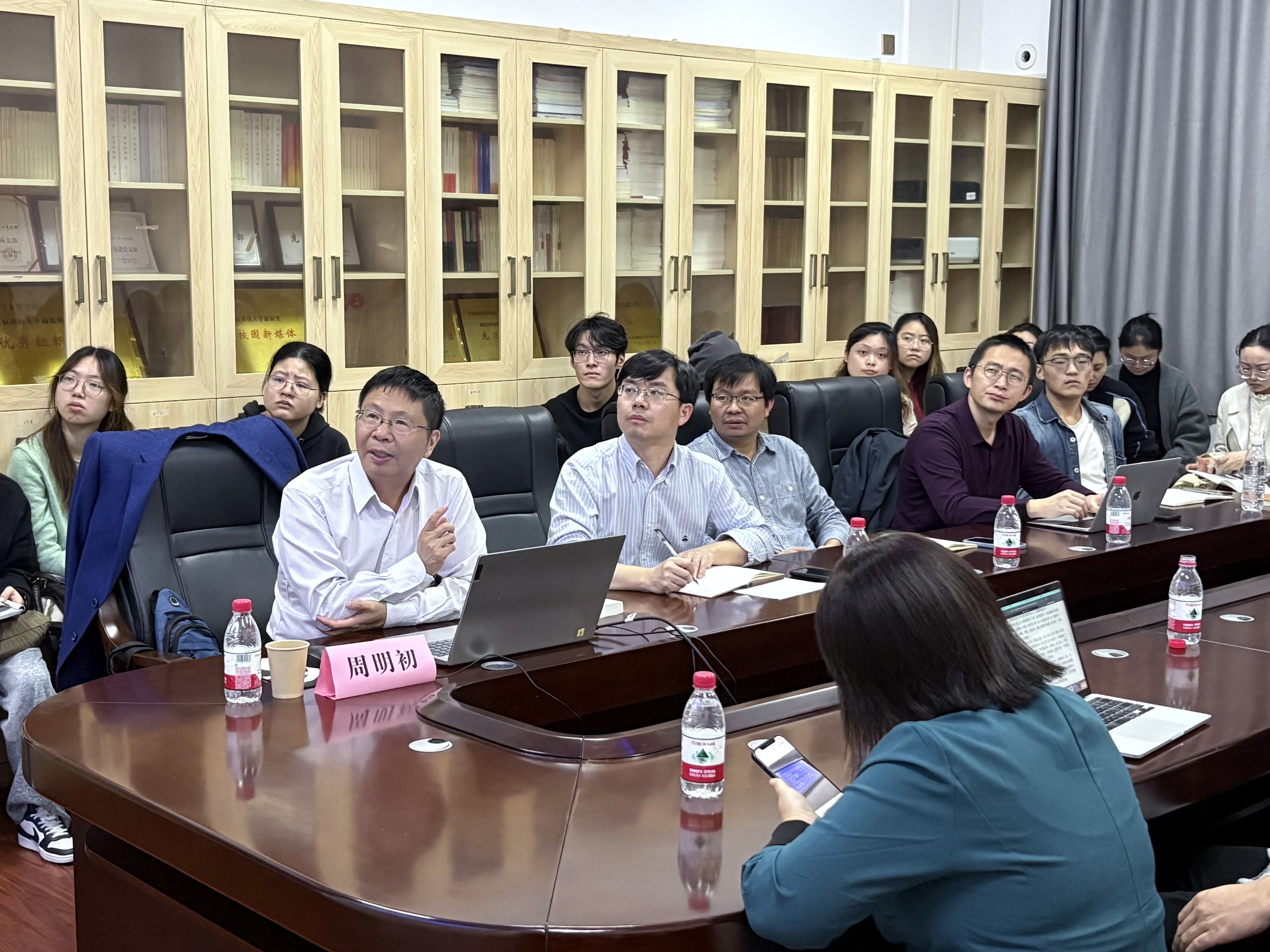 在互动环节中,周明初教授就在座学生提出的“明清书籍出版中的挂名现象与版权纠纷”“重编古人全集时应如何处理作者初稿和定稿”等问题进行了逐一解答。付湘龙教授也分享了自己的听讲心得,强调做学问须有心、有情、有恒。最终,讲座在师生们的热烈掌声中圆满结束。