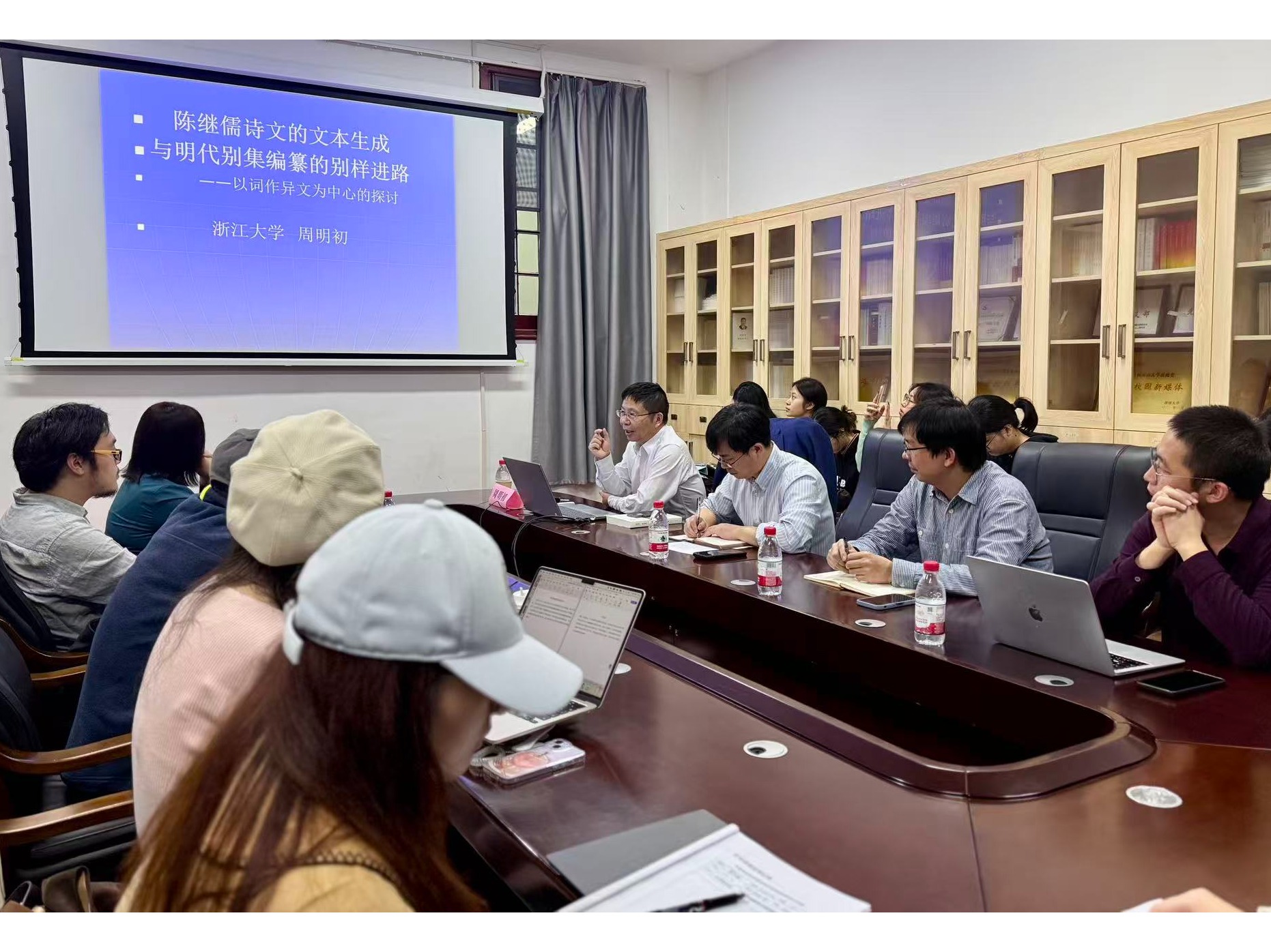 2025年11月7日晚7时,应湖南大学文学院邀请,浙江大学文学院博士生导师、浙江大学中国古代文学与文化研究所所长周明初教授莅临湖南大学中国语言文学学院,在113会议室作了题为“陈继儒诗文的文本生成与明代别集编纂的别样进路——以词作异文为中心的探讨”的学术讲座。本次讲座由湖南大学文学院副院长付湘龙教授主持,中国古代文学教研室教师和学院本科、硕士、博士研究生五十余人参加。