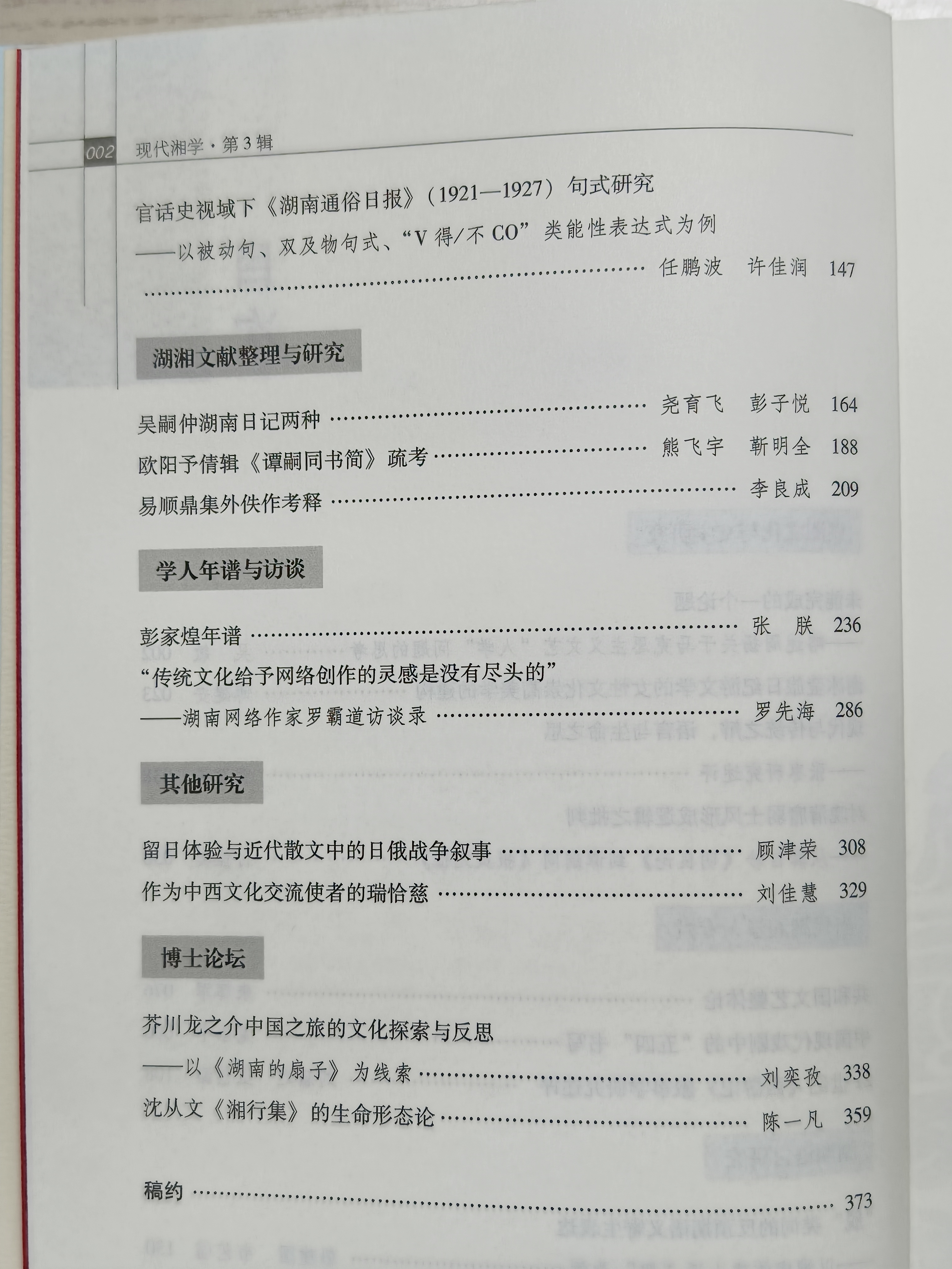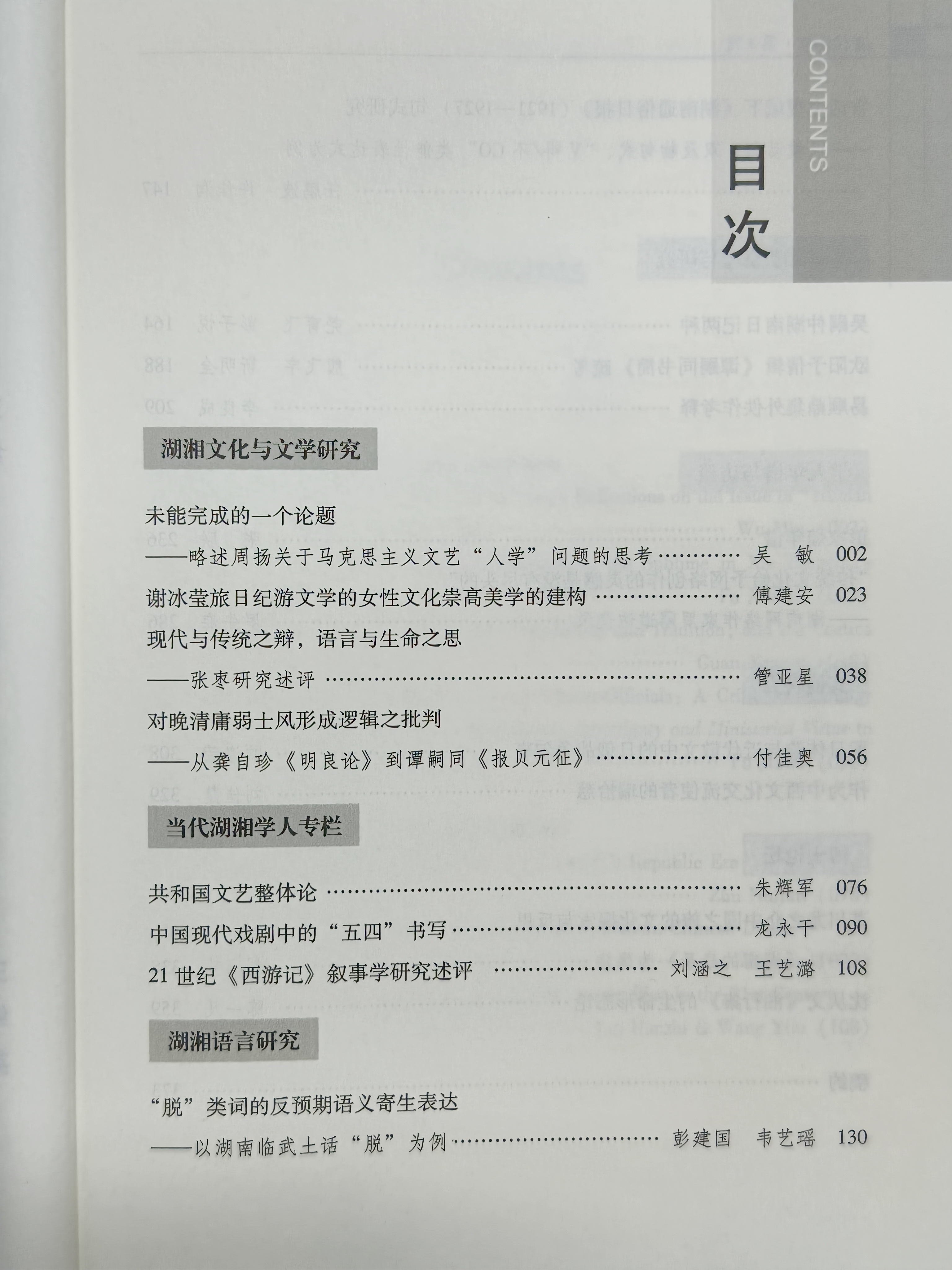 二、本刊常设栏目有现代湘学文献整理、现代湖湘文化与文学、湘学史研究、海外湘学研究、方言研究、当代湖湘学人专栏、博士论坛、访谈与年谱、书评与综述等。