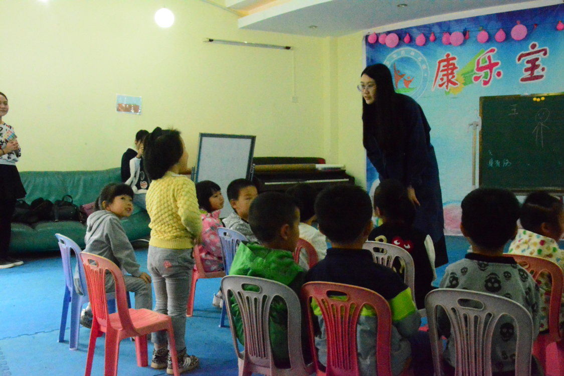 来到科教新村康乐宝贝幼稚园后,各位参加活动的成员们拿出事先准备好的小礼物——贴纸,送给大(1)班的小朋友们。小朋友们得到礼物后更是情绪高涨地期待着接下来的授课。授课开始后,按照事先分工,班长潘松林将《弟子规》的入孝篇板书在了小黑板上。作为活动策划人和1401班团支书的伍昭蓉则承担了讲解《弟子规》的任务。在讲解过程中,她运用生活中浅显易懂的例子跟小朋友们诠释《弟子规》入孝篇的具体内涵,并与小朋友们进行互动,现场气氛十分热烈和谐。在她的点化下,小朋友理解了“孝”的具体含义,并有多个小朋友主动举手分享感受。某一小男孩举手说道:“我知道我妈妈喜欢漂亮裙子,所以我以后会给她买好看的裙子。”
